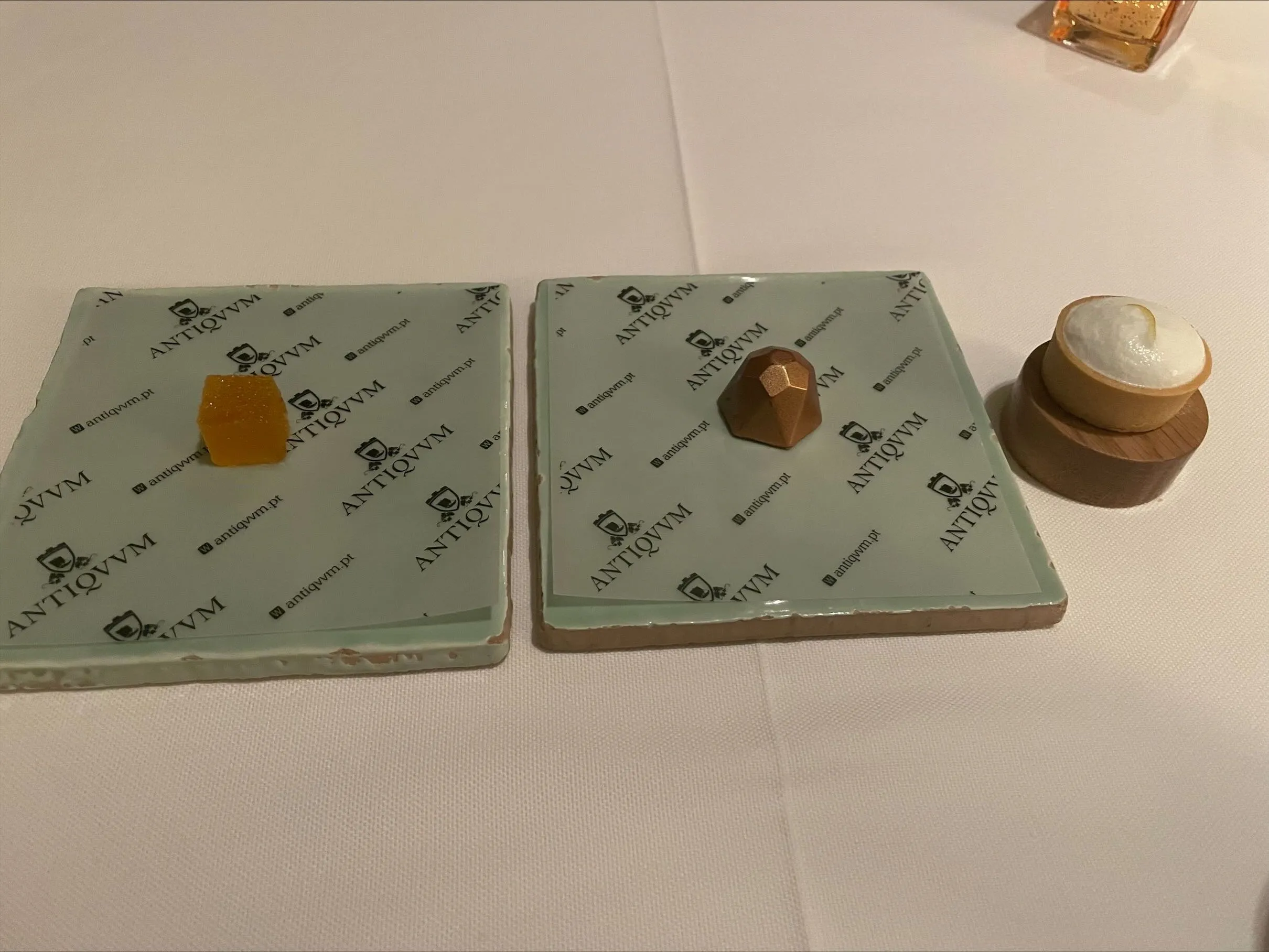 Antiqvvm is located in a park in the Museu Romantico, a little hidden but gorgeous, with large windows in beautiful arches looking out into the green. The fully vegetarian tasting menu is called “Organic”. Antiqvvm (even with the old-school Roman-style spelling), Organic, a beautiful garden — all of this conjures up hopes of a classical, produce-centric menu.