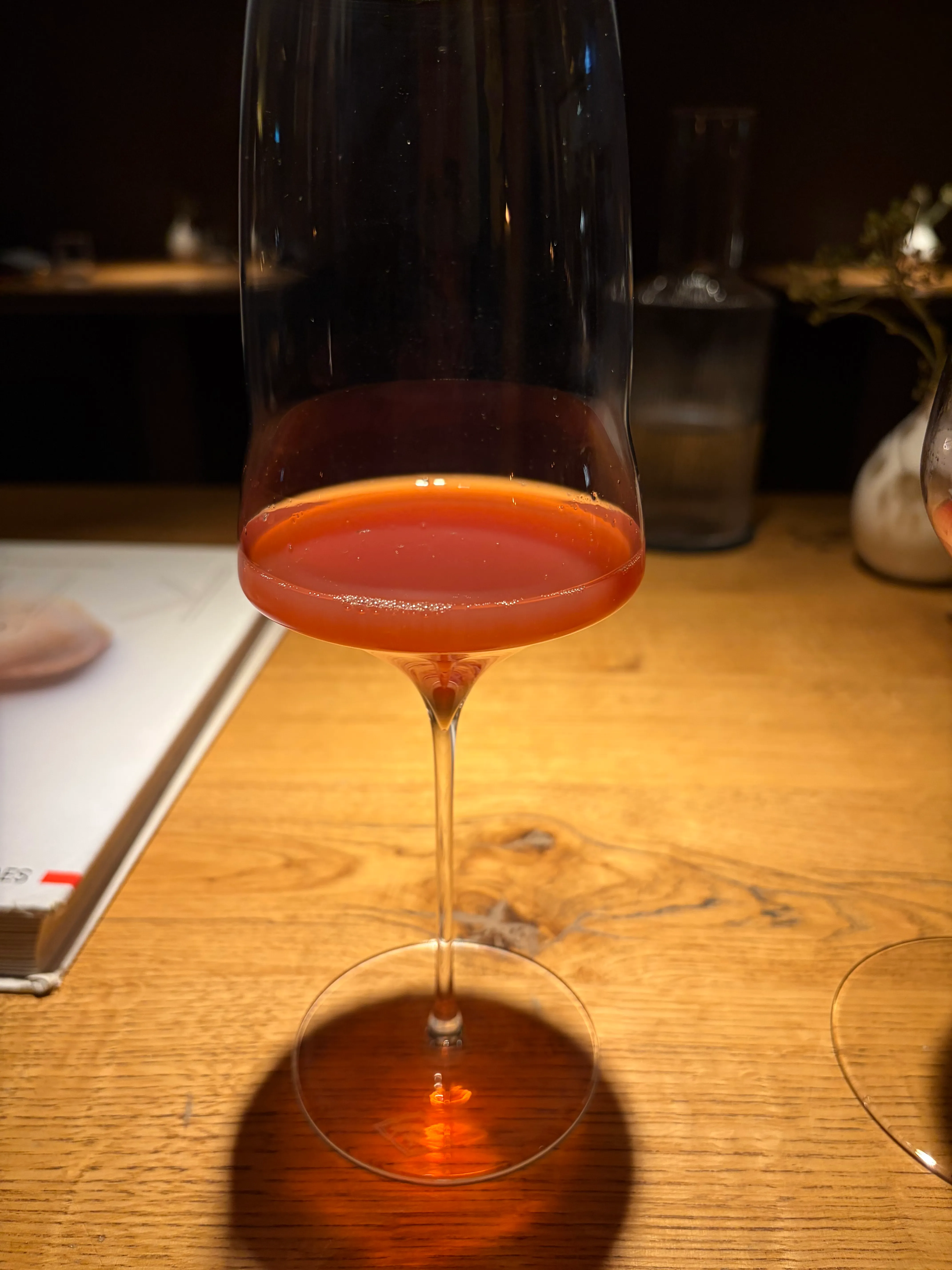 The friendly service also offers a supplemental glass of the juice pairing, which is a lightly oxidized apple juice with nutritional yeast, (unfortunately undetectable) lovage, and a salted lemon rim (not pictured). Not quite as complex as the previous juices, but a very pleasant combination of sweetness, umami, and salt. (8/10)