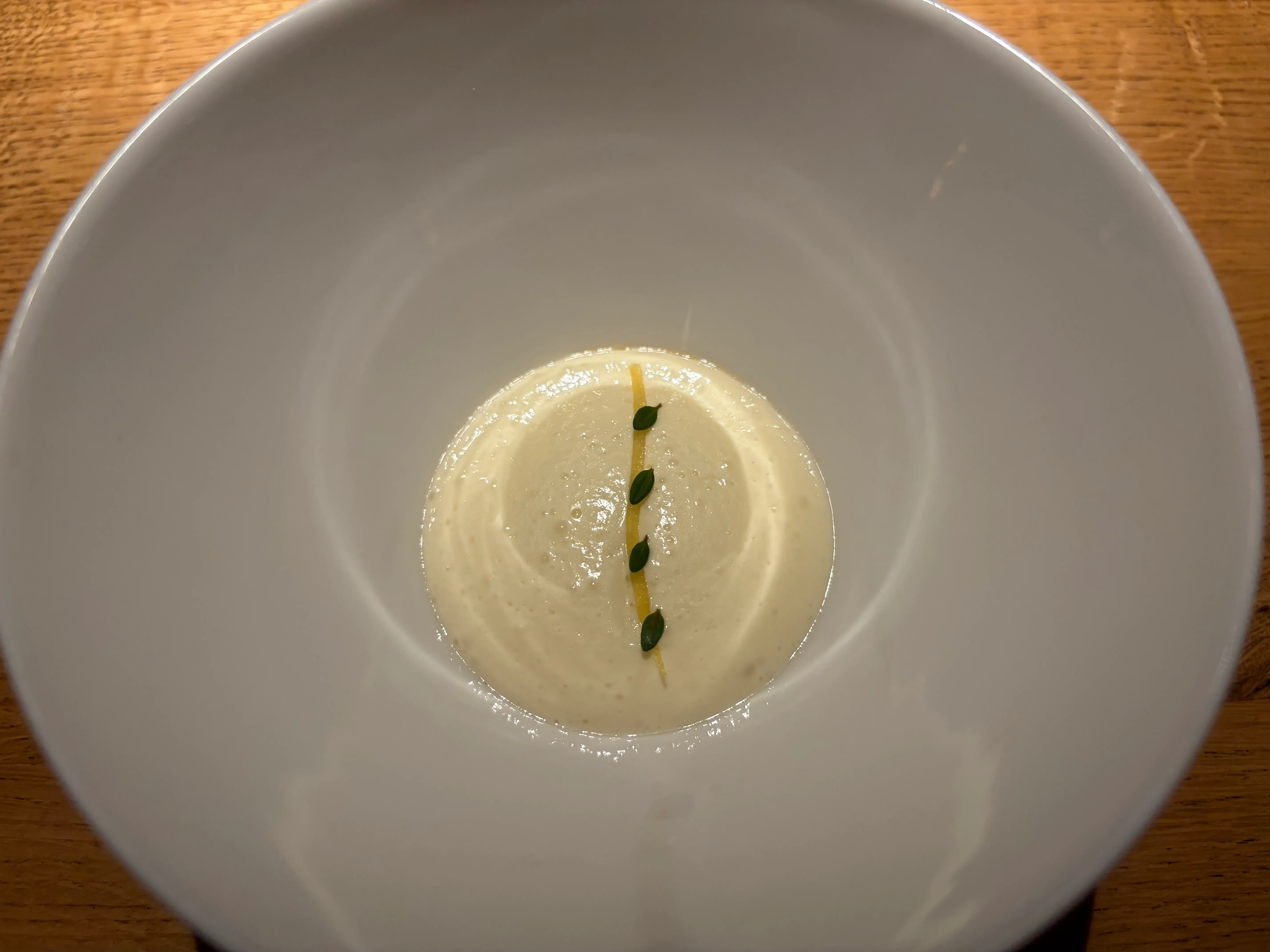 The first course of the menu is a mushroom-based vegetarian foie gras, served with a fluffy delicious Austrian bread filled with an apricot pit butter that almost tastes like marzipan. I have never had real foie gras, so I can’t comment on the comparison. This version is rich, umami, and undoubtedly pleasant, but essentially tastes like flavoured butter. If this is what real foie gras tastes like, no duck should have to suffer for this. (7/10)