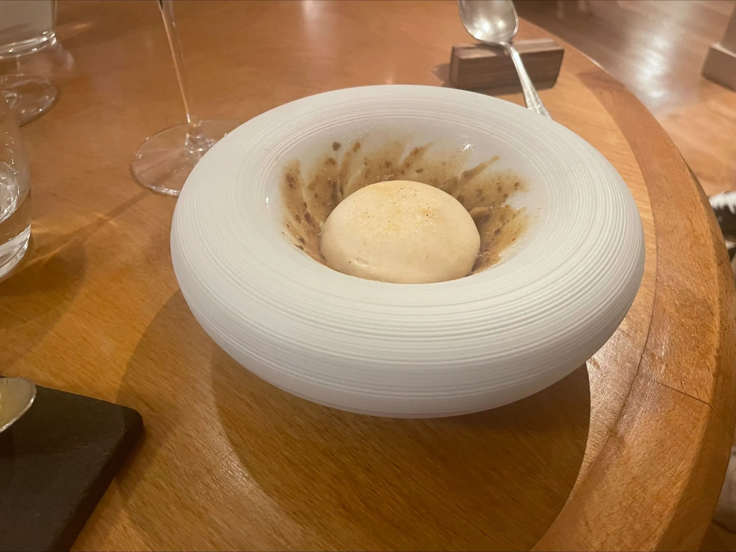 Our first dessert is a Senegalese-inspired dish with milk foam and some sort of biscuit. I can’t really comment on its Senegalese roots, but the result is not terribly unique and could easily be rebranded as a bistro dessert during Christmas time. Especially after the richness of the previous dish, I would’ve wished for something a little more fresh. Regardless, this is still a well-made and enjoyable dessert. (6/10)