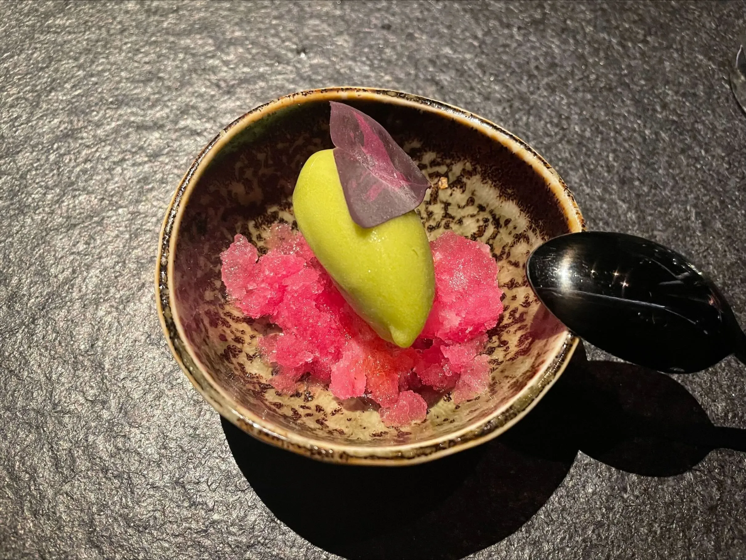 A palate cleanser of sorrel sorbet on shiso granita brings me back down to earth. (6/10)