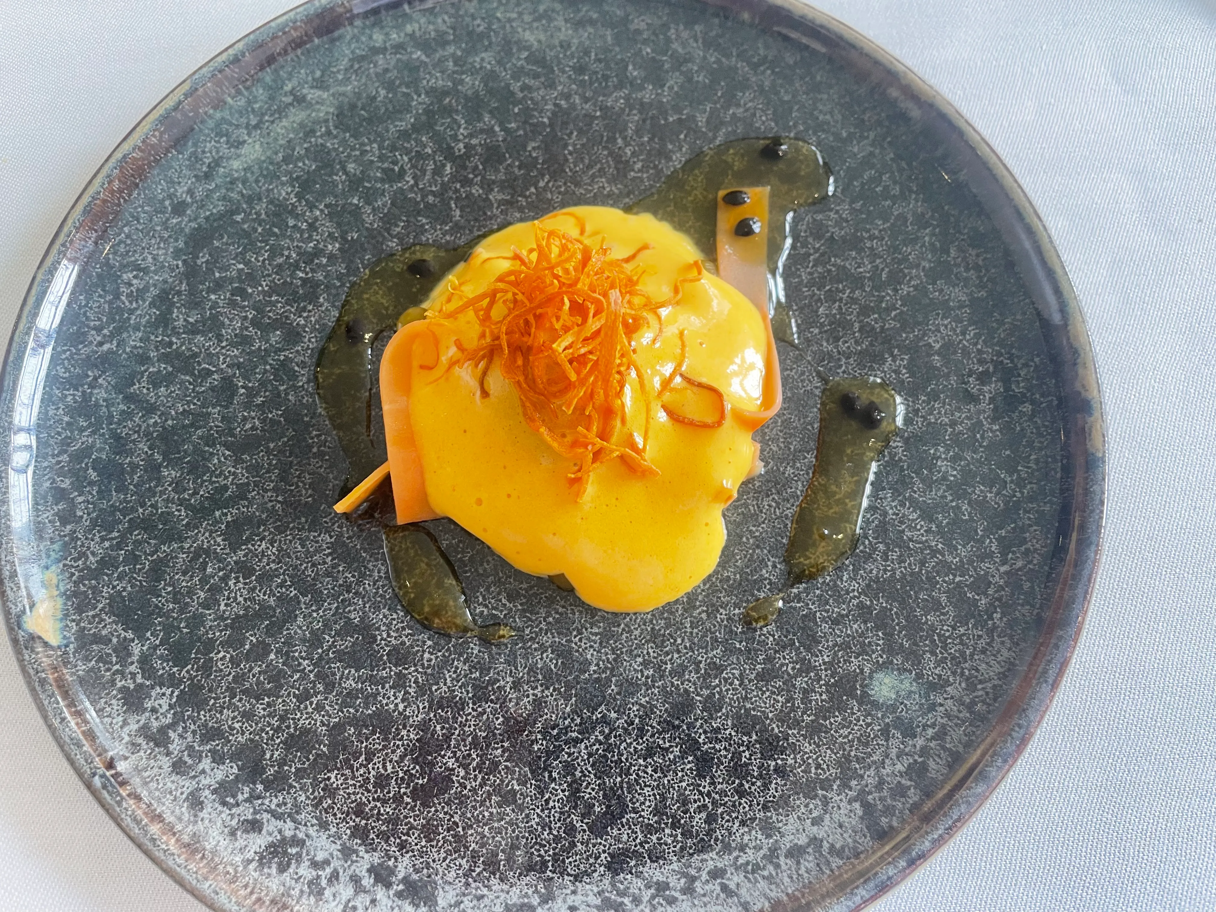I also get a glass of the alcohol free pairing, a very light drink of basil and lime. It’s elegant, but very subtle and fairly predictable (if you’ve ever tasted basil, and who hasn’t, you basically know what this will taste like). (7+/10)